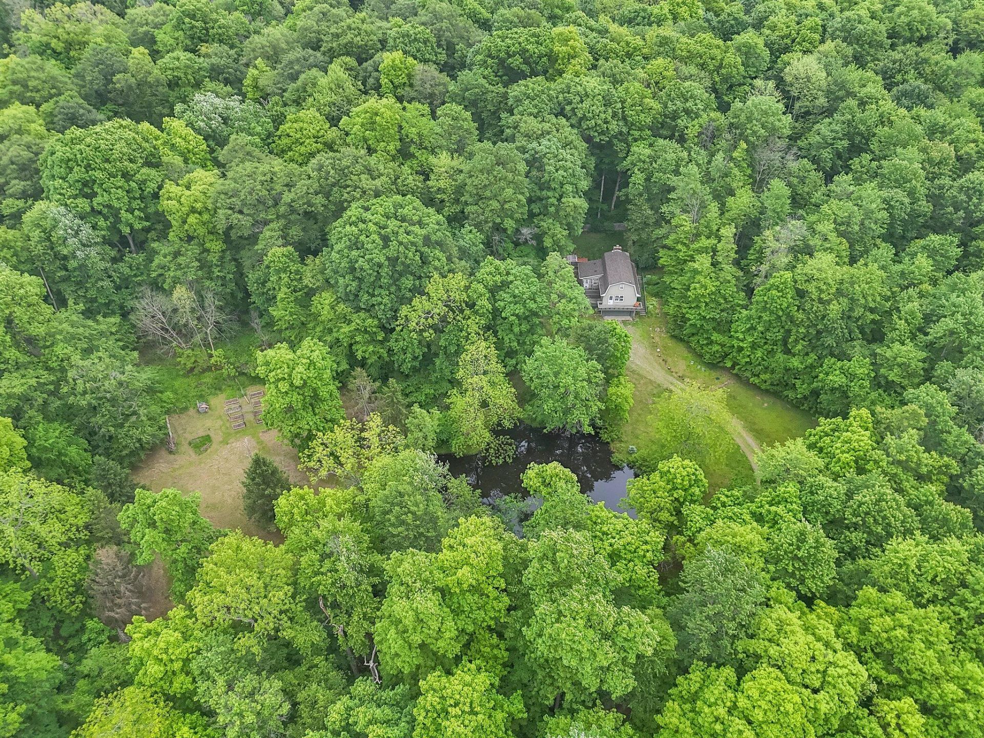 Calling all nature lovers & homesteaders! This property is the perfect canvas for creating your dream oasis, complete with a fenced orchard, raised garden beds, a large pond, & acres of serene wooded land. From the moment you arrive, the winding, tree-canopied drive sets the tone--you'll be in love before you even set eyes on the charming 1,500-sqft barn-dominium style home. Inside the two-story layout offers 3 bedrooms & 1 full bath. The main level features an open-concept living room and kitchen with quartz countertops and a cozy cabin-like feel. A wood-burning fireplace anchors the living space, creating the perfect spot for gatherings....read more